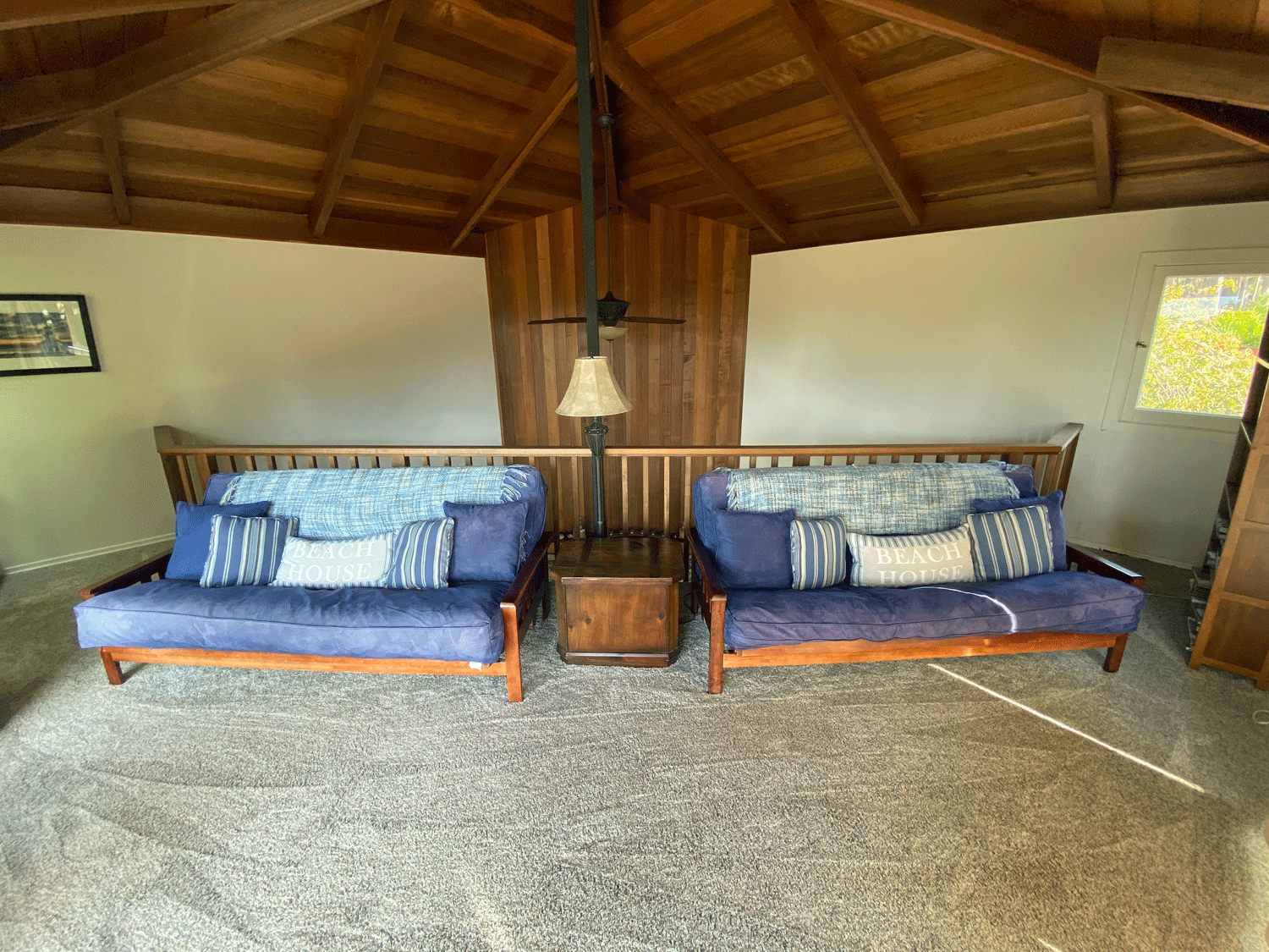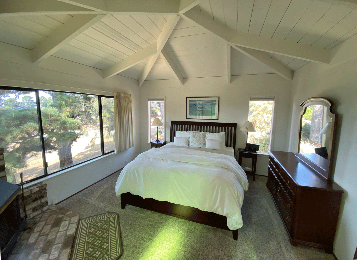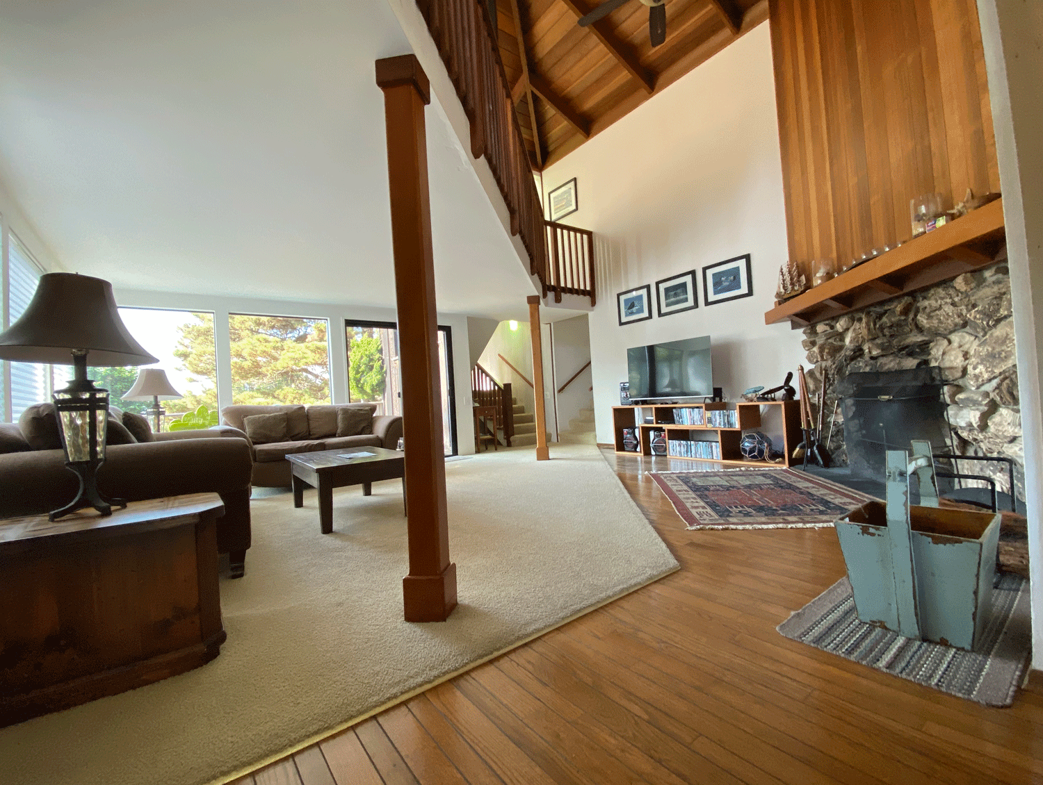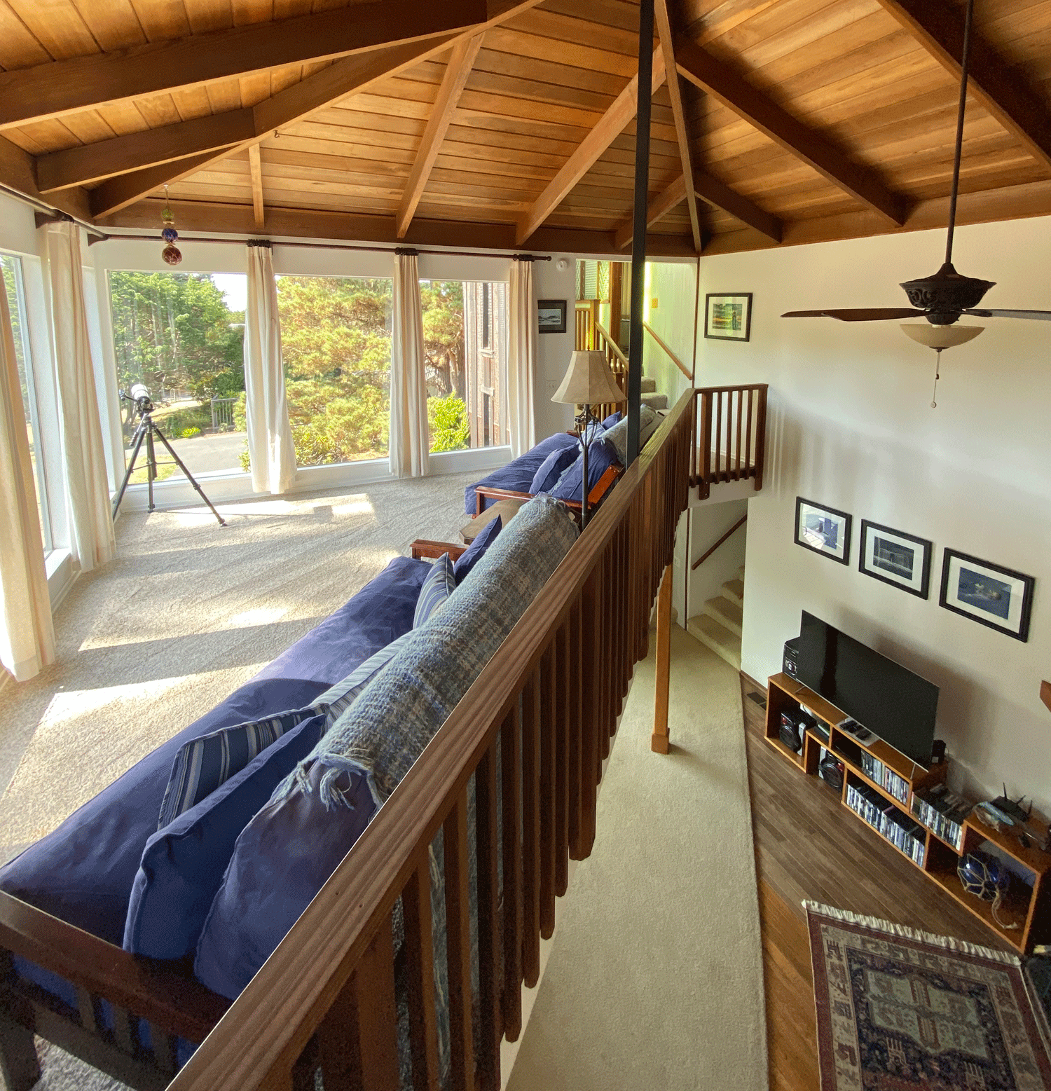 The loft above the living room has ceiling to wall windows facing west and south for great views of the ocean and pretty neighborhood.