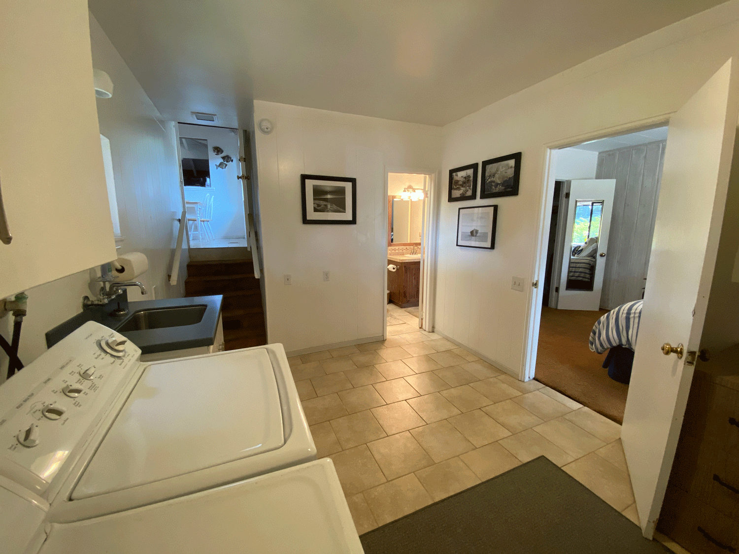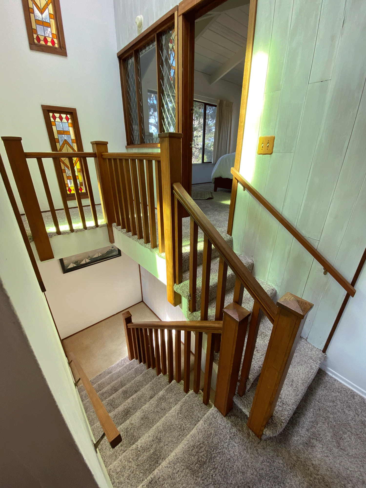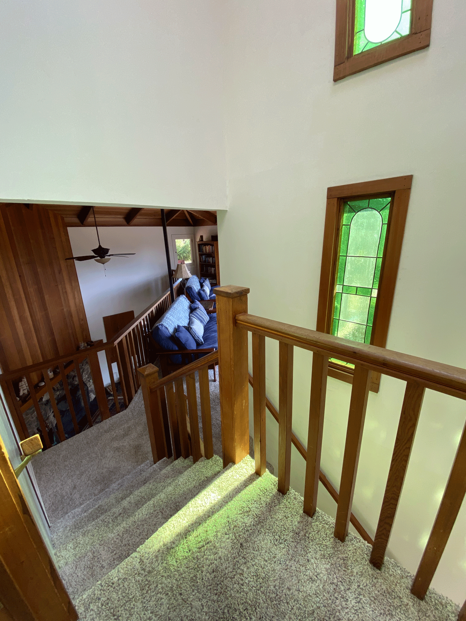 The loft above the living room has ceiling to wall windows facing west and south for great views of the ocean and pretty neighborhood.