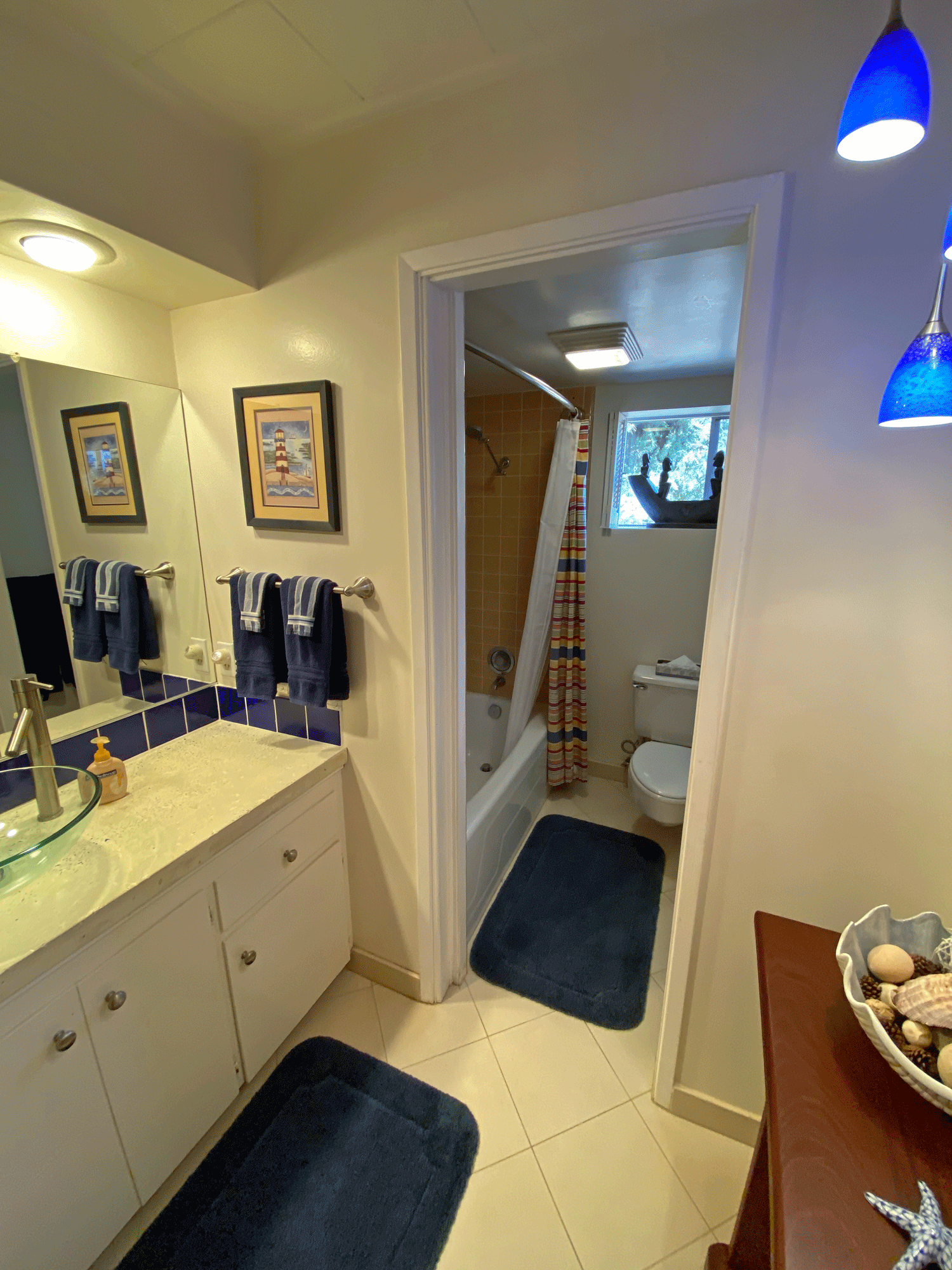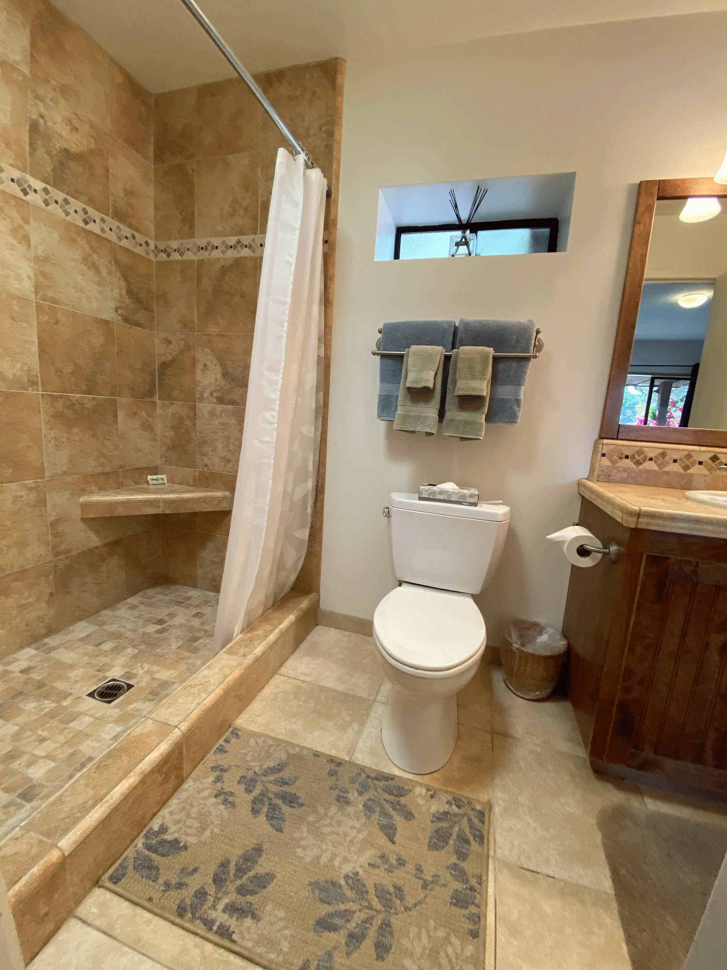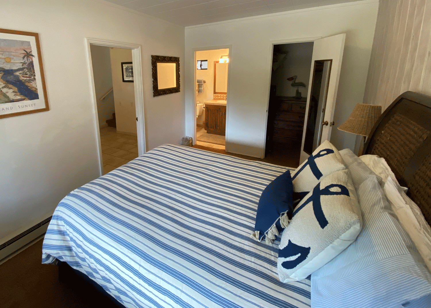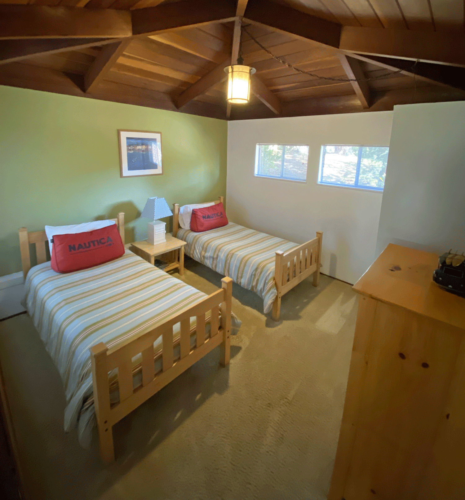 The loft above the living room has ceiling to wall windows facing west and south for great views of the ocean and pretty neighborhood.