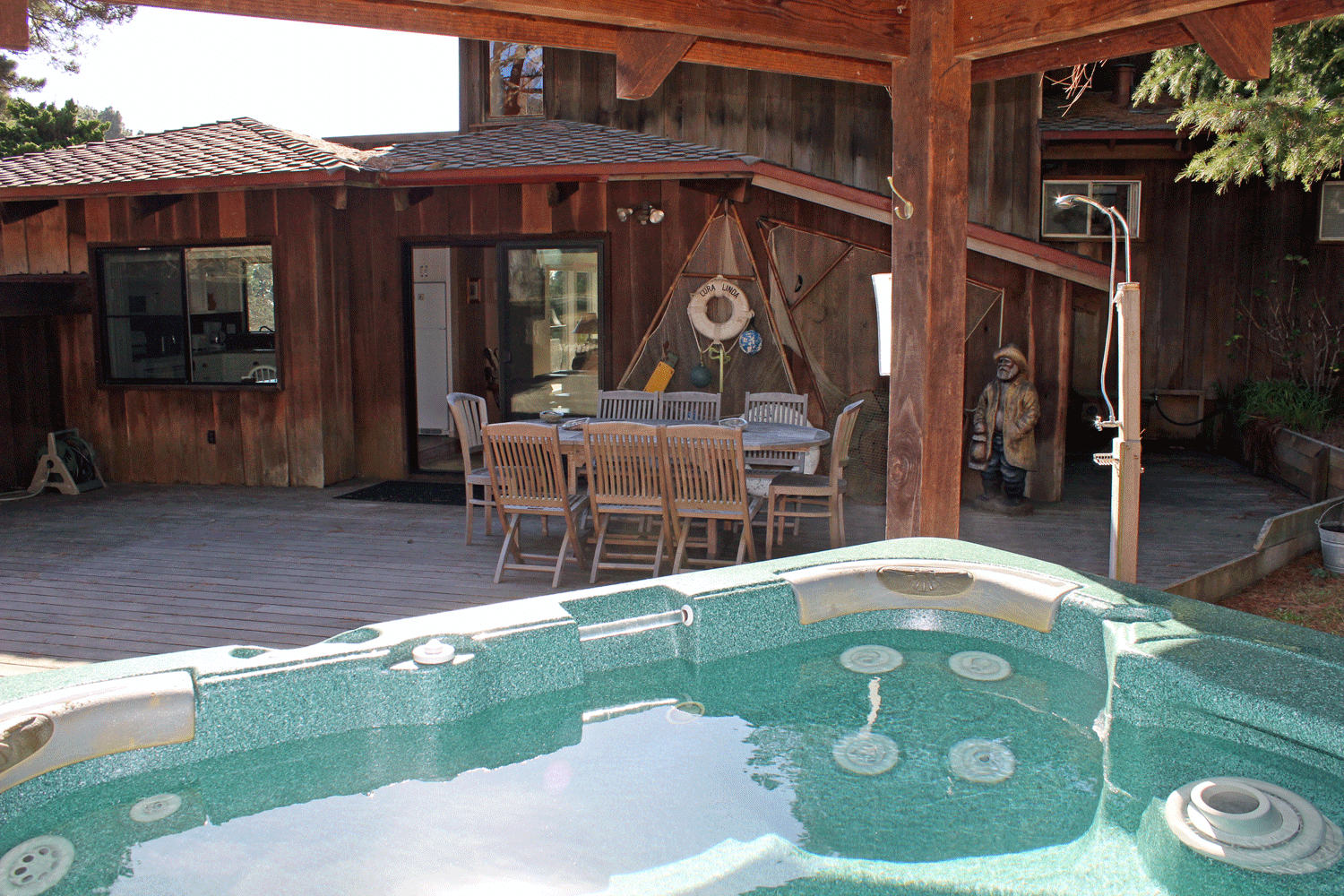 You are 2 minutes north of Mendocino Village and just on the other side of the village is Big River State Beach; a large, white sand beach with lots of room to stay all day and fire rings for a cook out at night with the ocean crashing nearby.