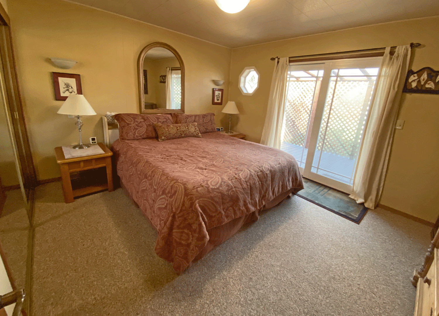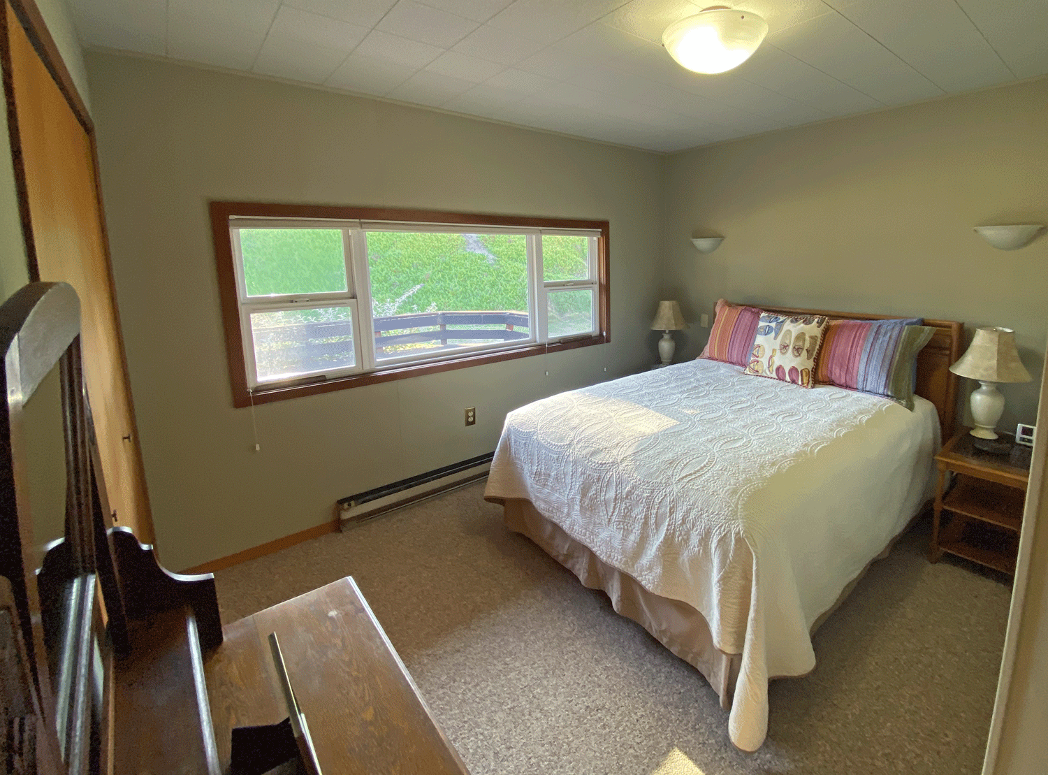 Two bedrooms, 1 king and 1 queen,1 bathroom off central hall