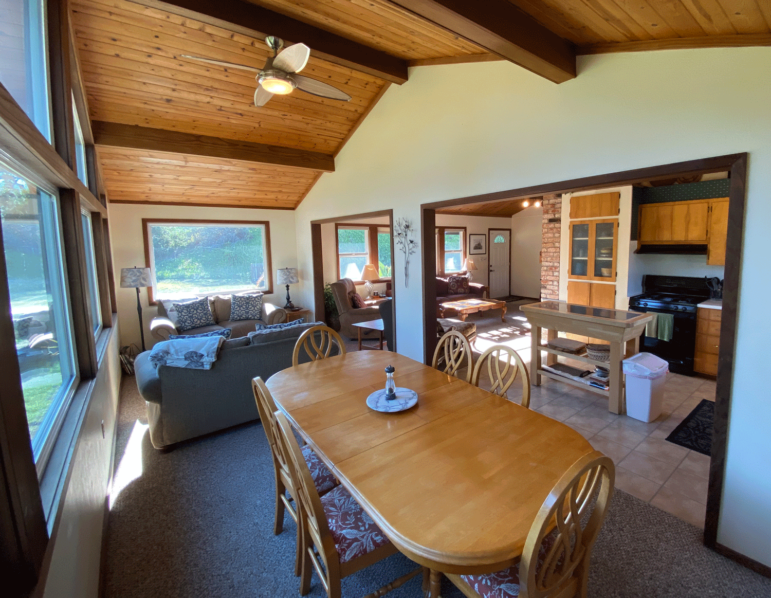 Open Floor Plan with Fully Equipped Kitchen, Large Glass Enclosed Dining Room and