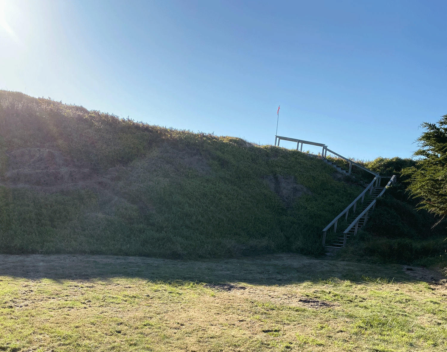 staircase leads you to the top of the dunes and the viewing deck with bench seating. There you